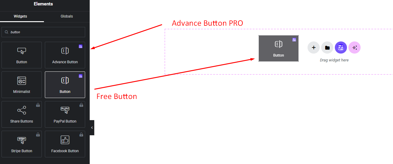 Select the Button widget from the left panel, then drag and drop it into your desired area on the canvas.