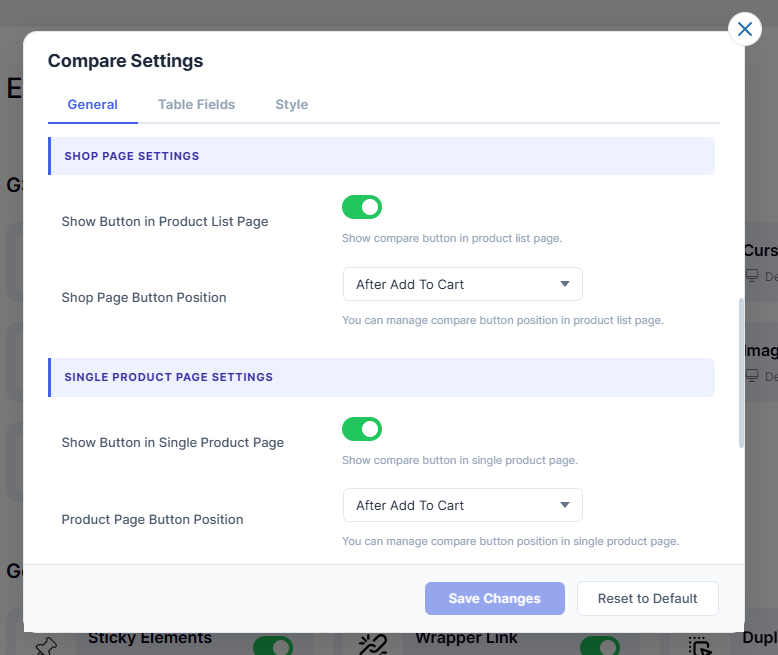 - 2.2 – Shop Page Button PositionSet where the Compare button appears on product list page.