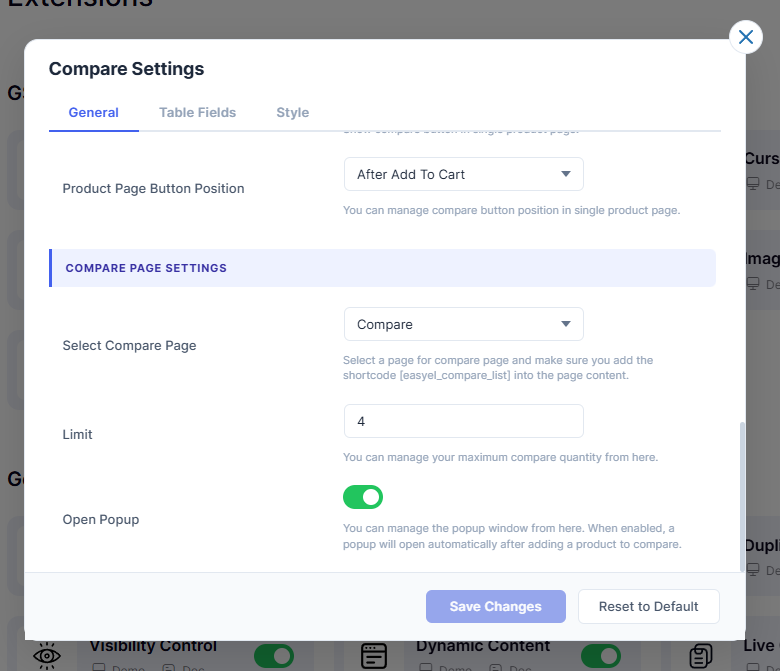 4 - 4.3 – Open PopupAutomatically opens a popup after a product is added to compare.