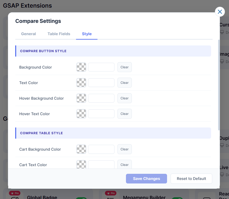 You can customize the following styles in the compare table.