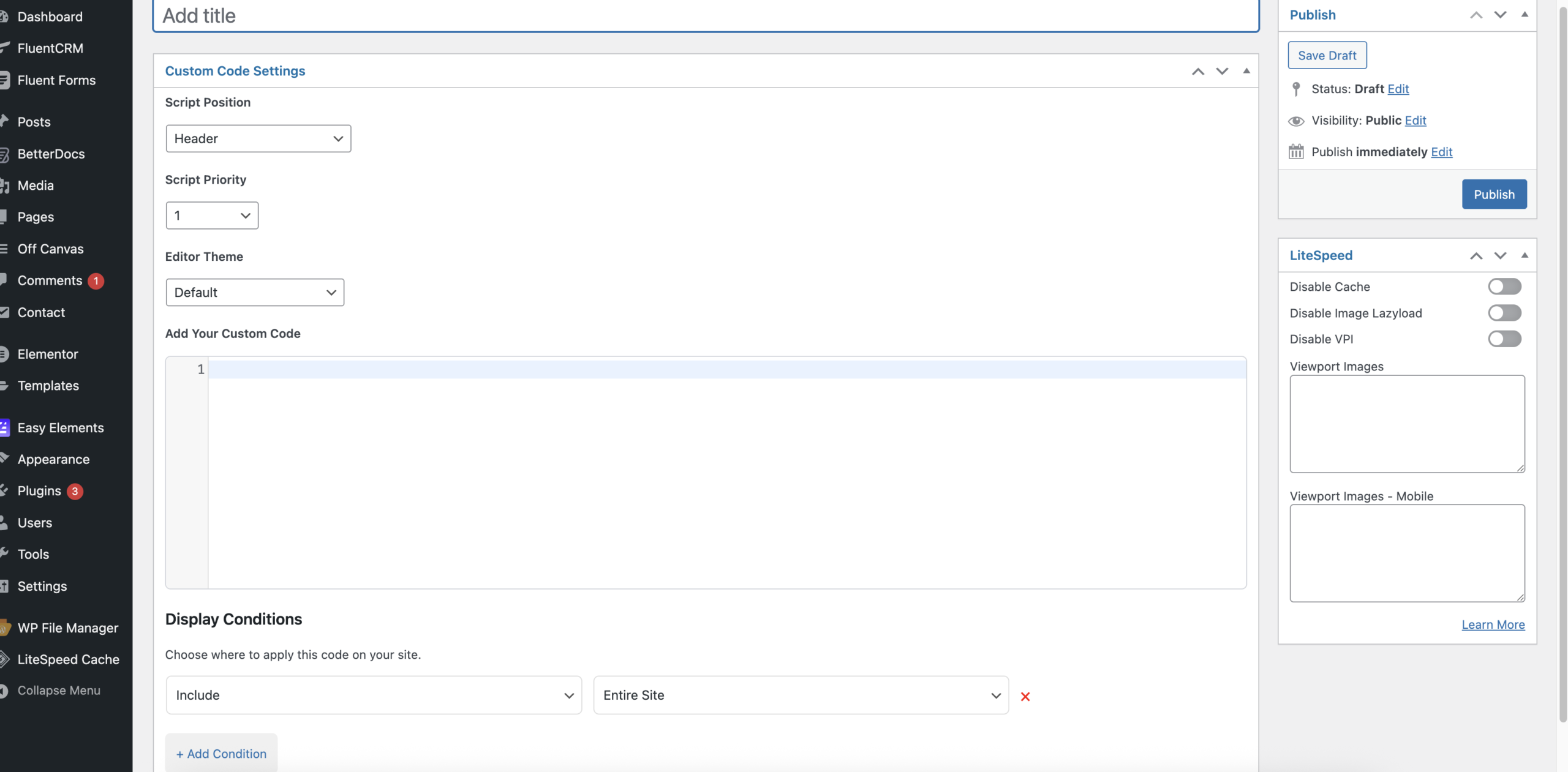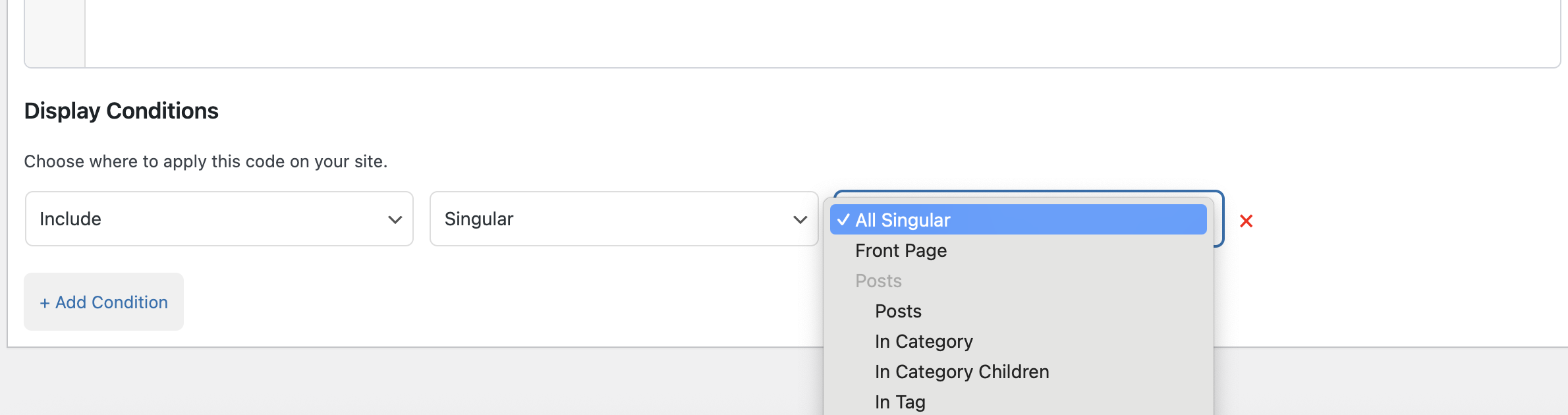 6. Also you set condition here where show this code. Which page or entire site or anywere