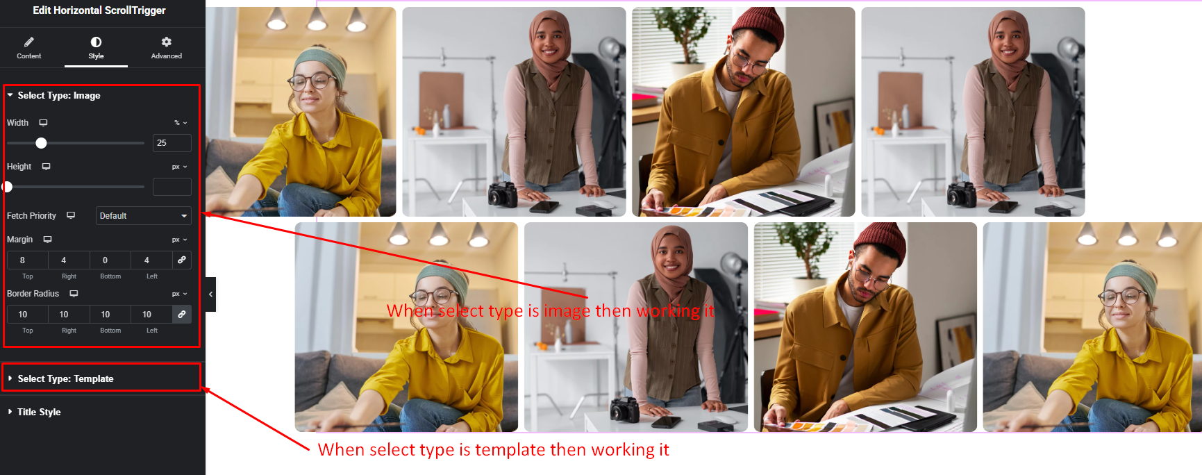 Easily customize your widgets appearance including ScrollTrigger items and title style — all from the Style panel.