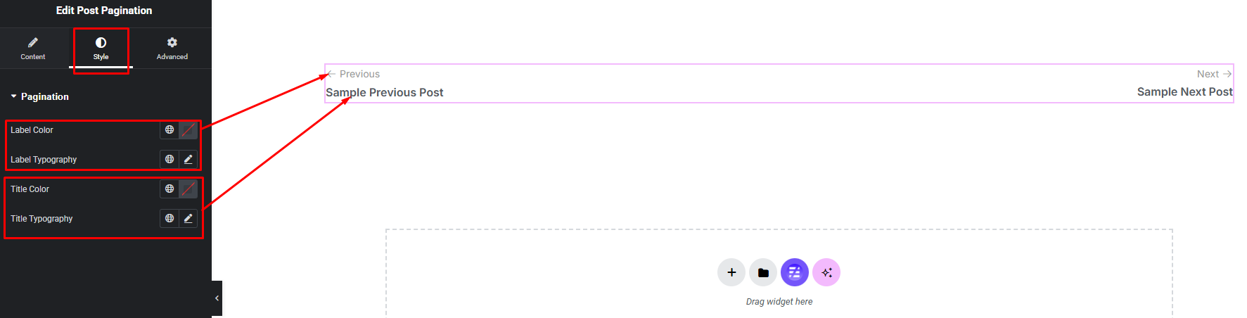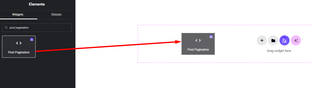 Select the Post Pagination widget from the left panel, then drag and drop it into your desired area on the canvas.