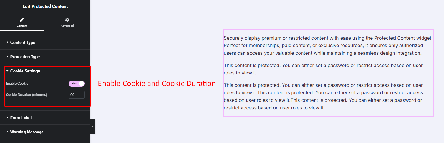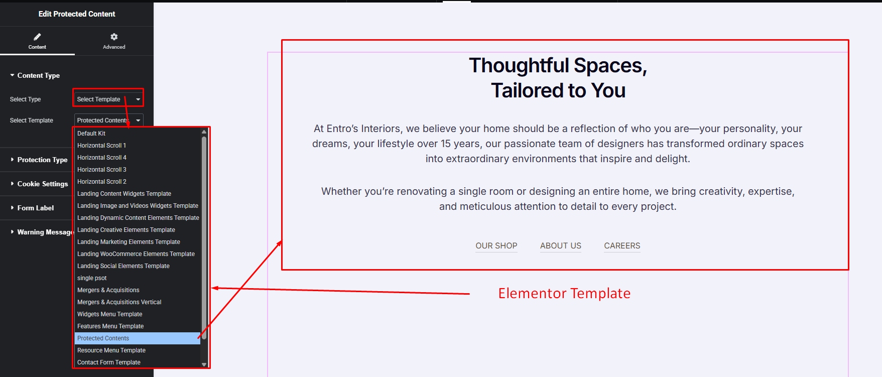 Select an Elementor template to show as your protected content. This allows you to design the restricted section separately and reuse it anywhere