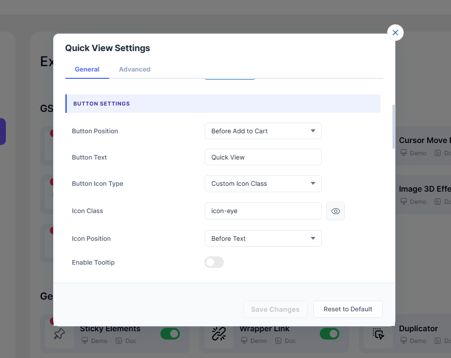 - 2.2 – Button TextCustomize the label shown on the Quick View button.