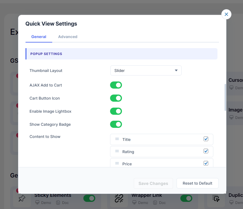 - 1.3 – Enable on MobileEnables or disables Quick View on mobile devices.