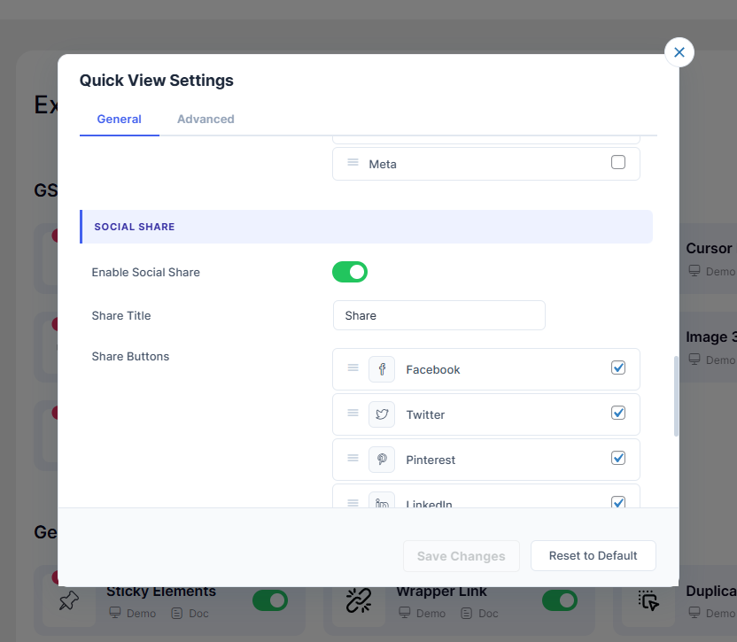 - 4.1 – Enable Social ShareShow or hide social sharing buttons in popup.
