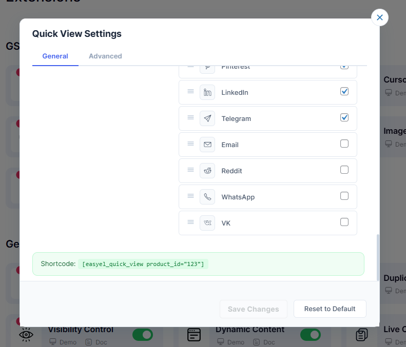 - 1.1 – Enable Quick ViewToggles the Quick View feature on or off sitewide.