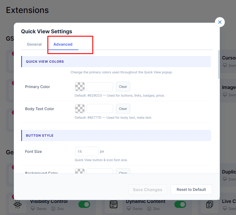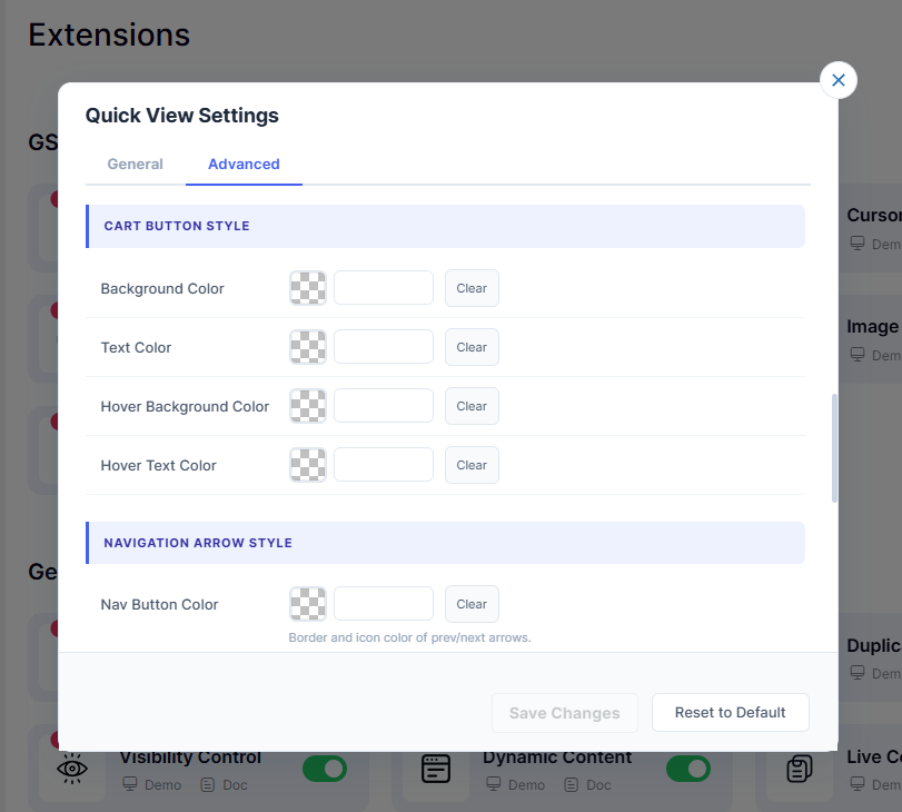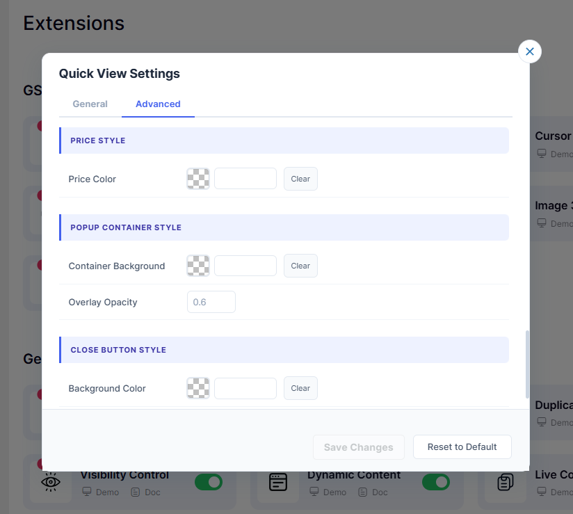 - 6.1 – Container BackgroundBackground color of the Quick View popup container.