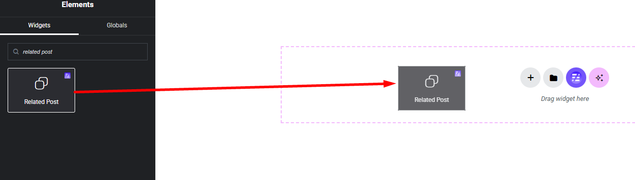 Select the Related Post widget from the left panel, then drag and drop it into your desired area on the canvas.