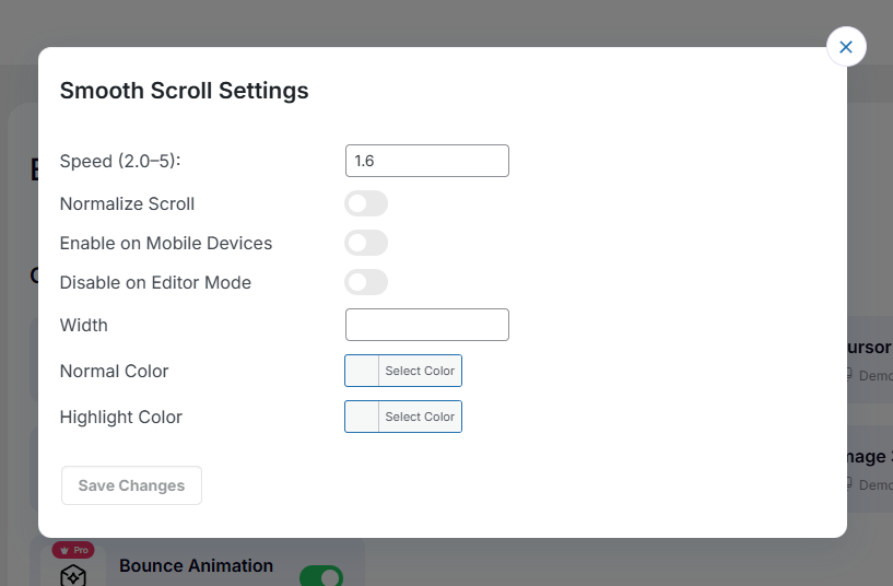 When you click the Settings icon, a Scroll Smoother popup will appear.