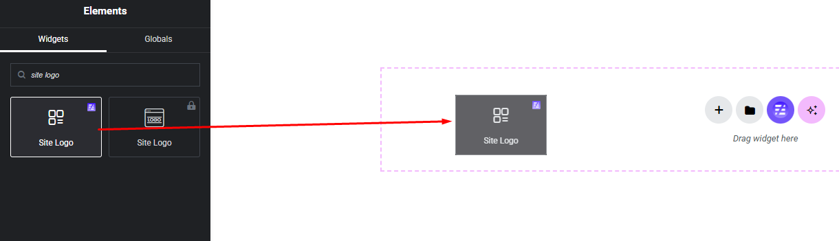 Select the Site Logo widget from the left panel, then drag and drop it into your desired area on the canvas.