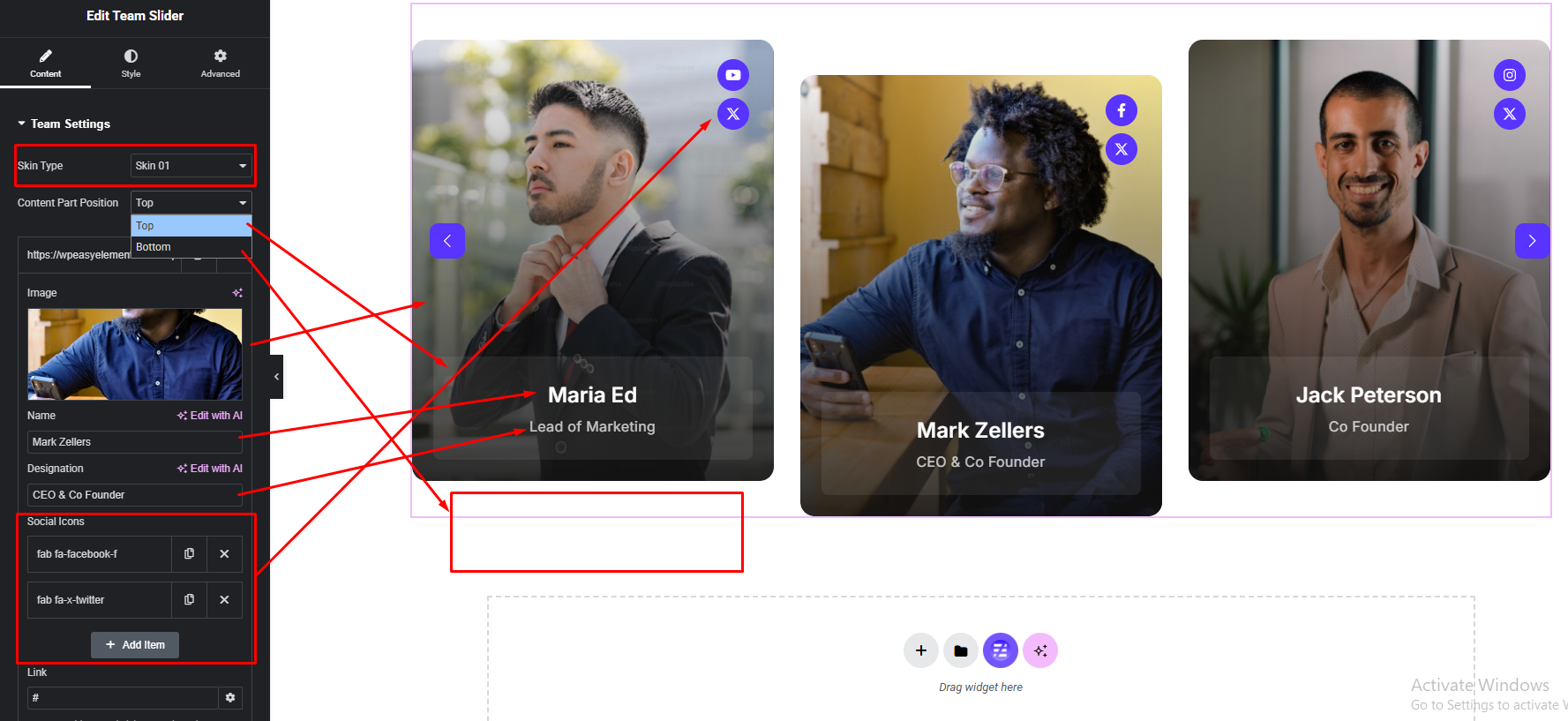 Add Team Slider Widget: