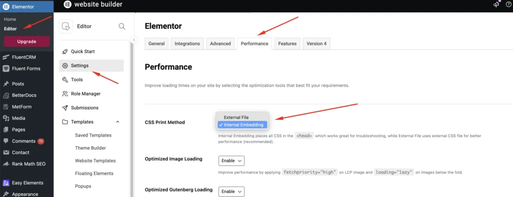 - Go to Elementor → Settings → Performance