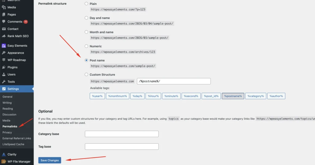 - Go to Settings → Permalinks